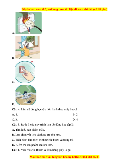 Câu 4. Làm đồ dùng học tập tiến hành theo mấy bước? A. 1. B. 2. C. 3. D. 4.