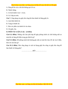 Câu 7. Công dụng của giấy thủ công khi làm thước kẻ bằng giấy là: A. Làm thân thước kẻ. B. Trang trí thước kẻ.
