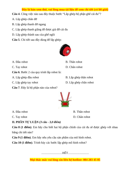 Câu 10 (1 điểm). Trình bày các bước lắp ghép mô hình robot?
