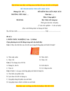 TRƯỜNG TIỂU HỌC … Năm học: …. Môn: Công nghệ 4 Mã đề thi: