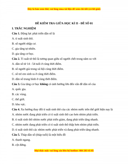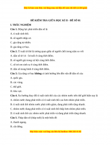 ĐỀ KIỂM TRA GIỮA HỌC KÌ II - ĐỀ SỐ 01 I. TRẮC NGHIỆM
