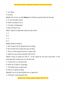 Câu 7. Nguồn lao động được phân làm mấy nhóm? A. 2. B. 3. C. 4. D. 5.