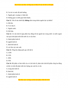 Câu 12. Cơ cấu kinh tế góp phần huy động tối đa nguồn lực trong nước và nước ngoài