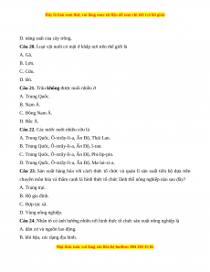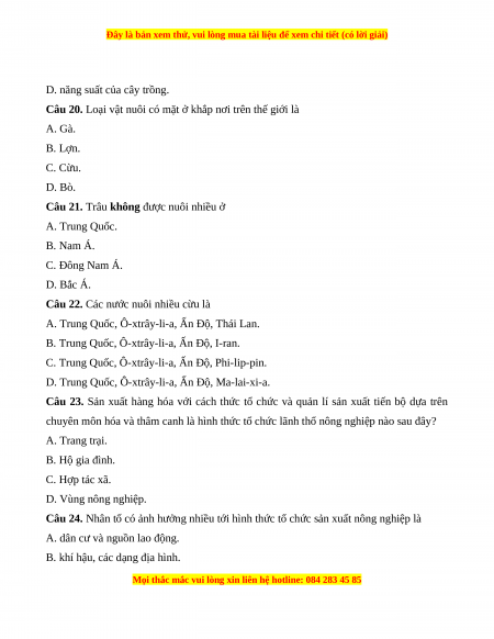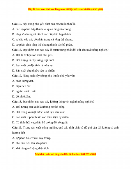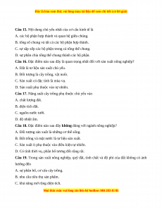 Câu 19. Trong sản xuất nông nghiệp, quỹ đất, tính chất và độ phì của đất không có ảnh hưởng đến