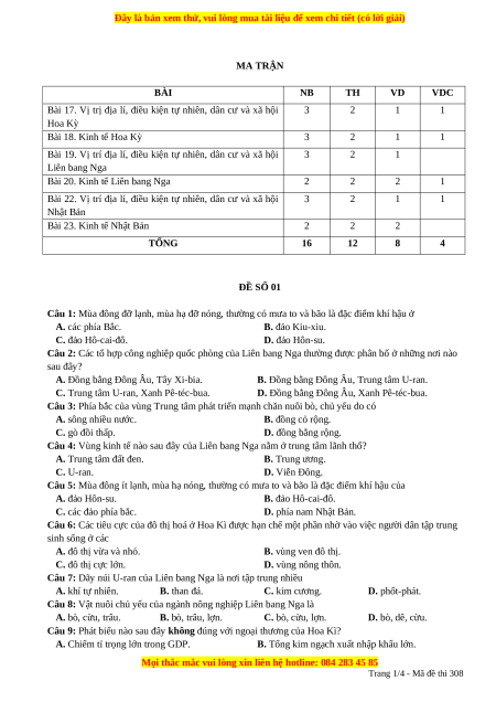 Đây là bản xem thử, vui lòng mua tài liệu để xem chi tiết (có lời giải)