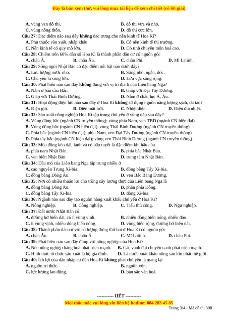 Câu 24: Đặc điểm nào sau đây không đúng với dân cư Hoa Kì?