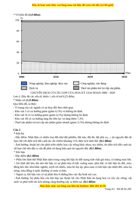 Lưu ý: Đầy đủ các yếu tố, thiếu 1 yếu tố trừ 0,25 điểm.