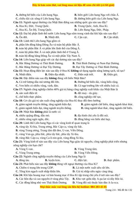 Câu 2: Quan hệ Việt Nam - Liên bang Nga đã chính thức được thiết lập vào năm nào sau đây? A. 1945. B. 1950. C. 1965. D. 1995.