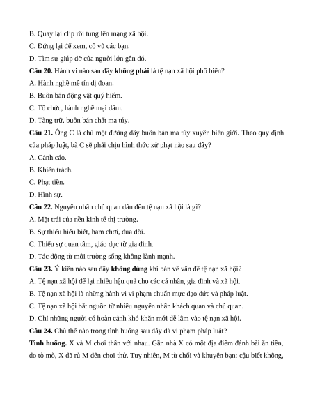 Câu 17. Cách ứng phó nào dưới đây không phù hợp với quy định của pháp luật về