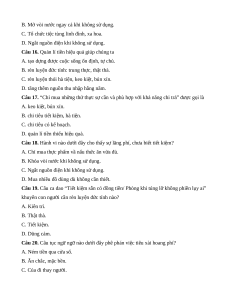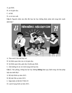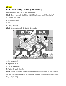 Câu 1. Hành vi nào dưới đây không phải là biểu hiện của bạo lực học đường? A. Lăng mạ, xúc phạm. B. Đe dọa, khủng bố. C. Đến trễ hẹn. D. Cô lập, tẩy chay.