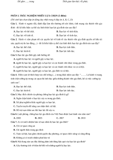 PHẦN I. TRẮC NGHIỆM NHIỀU LỰA CHỌN (5 điểm)