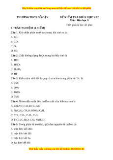 - Đề thi giữa kì 2 môn Hóa lớp 9 trường THCS Đỗ Cận năm 2023 có đáp án.