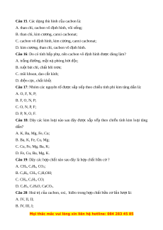Câu 16: Do có tính h p ph ấ , nên cacbon ụ vô đ nh hì ị nh đư c dùng l ợ àm? A. tr ng đ ắ ư ng, ờ m t ặ nạ phòng h i ơ đ c; ộ B. ru t ộ bút chì, ch t ấ bôi tr n; ơ C. mũi khoan, dao c t ắ kính; D. điện c c, ự ch t ấ kh ; ử