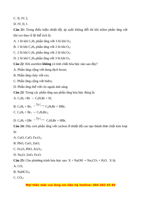 Câu 21: Trong đi u ki n nhi t đ , áp su t không đ i thì khí etilen ph n ng v iề ệ ệ ộ ấ ổ ả ứ ớ
