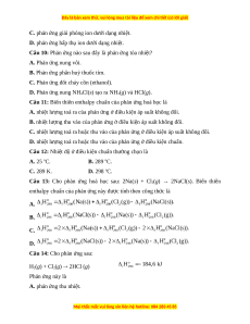 Câu 16: Ở điều kiện chuẩn, phản ứng có biến thiên enthalpy của phản ứng bằng