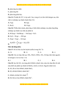 Câu 17: Số oxi hóa của lưu huỳnh (sulfur) trong SO