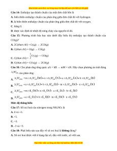 Câu 15: Phương trình hóa học nào dưới đây biểu thị enthalpy tạo thành chuẩn của