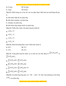 Câu 13: Ở điều kiện chuẩn. Khi phản ứng thu nhiệt thì A. . B. . C. . D. .
