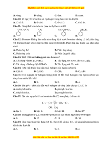 Câu 11: Công thức của toluene (hay methylbenzene) là CH2CH2CH3 CH3 H3C CH CH3 A. B. C. D.