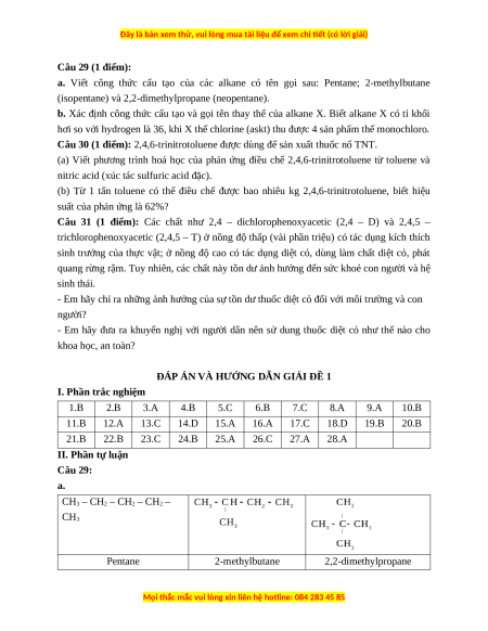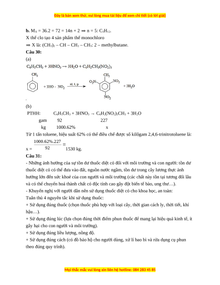 Câu 30 (1 điểm): 2,4,6-trinitrotoluene được dùng để sản xuất thuốc nổ TNT.