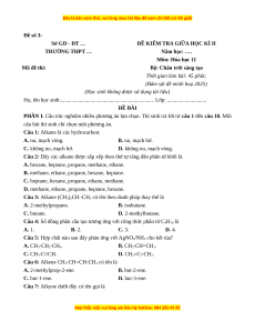 ĐỀ KIỂM TRA GIỮA HỌC KÌ II TRƯỜNG THPT … Năm học: …. Môn: Hóa học 11 Mã đề thi: