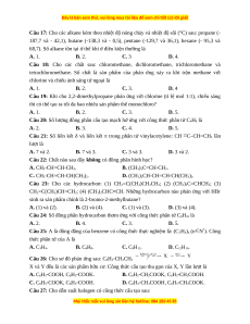 Câu 14: Công thức tổng quát của dẫn xuất monochlorine no, mạch hở là: A. CnH2n-5Cl. B. CnH2n-3Cl. C. CnH2n-1Cl. D. CnH2n+1Cl.