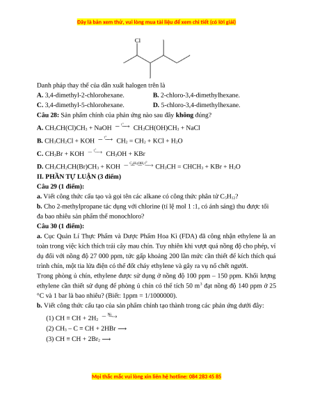đa bao nhiêu sản phẩm thế monochloro? Câu 30 (1 điểm):