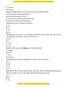 thu V lít khí H2 (đktc). Giá tr c ị a ủ V là: A. 1,68. B. 3,36. C. 6,72. D. 2,24. Câu 17: Kim lo i