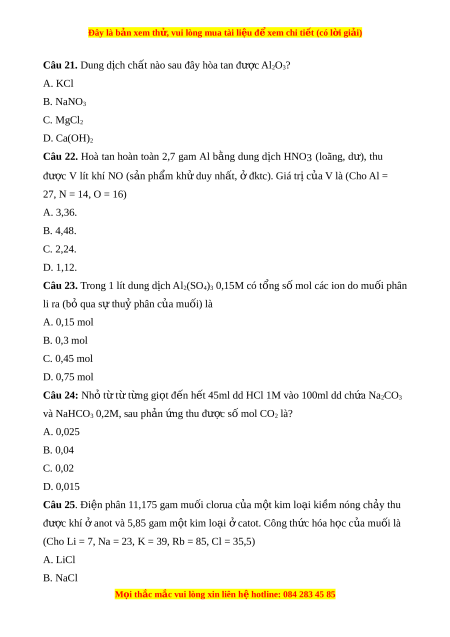 Câu 21. Dung d ch ch t nào sau đây hòa tan đ c Alị ấ ượ