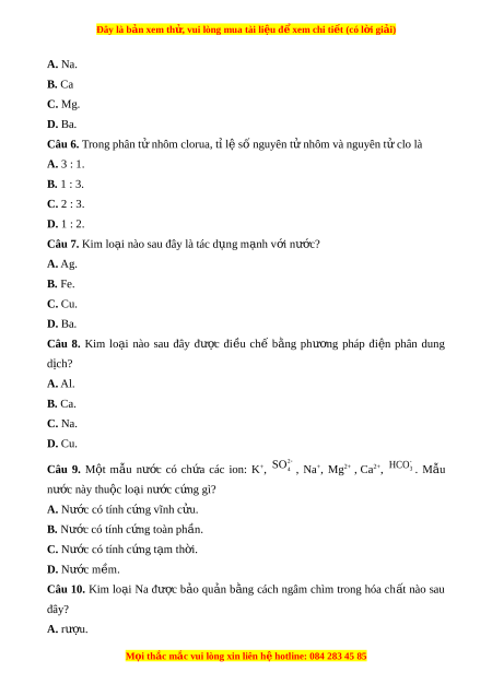 Đây là bản xem th , vu ử i lòng mua tài li u ệ đ xe ể m chi ti t ế (có l i ờ gi i ả ) A. Na. B. Ca C. Mg. D. Ba.