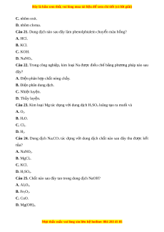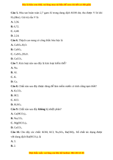 Câu 8. Chất nào sau đây đư c ợ dùng đ l ể àm m m ề nư c ớ có tính c ng t ứ m ạ th i ờ ? A. K2CO3. B. HCl. C. KCl. D. H2SO4.