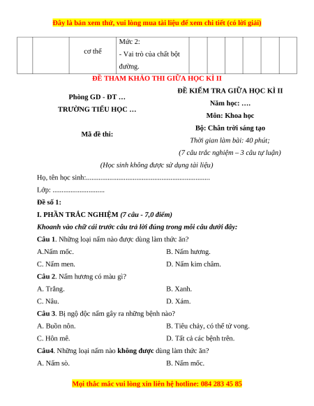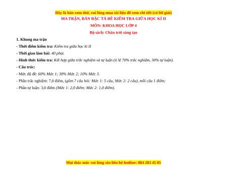 - Tailieugiaovien.com.vn giới thiệu đề giữa kì 2 gồm đầy đủ ma trận và lời giải chi tiết môn Khoa học lớp 4 Chân trời sáng tạo mới nhất năm 2023 nhằm giúp Giáo viên có thêm tài liệu tham khảo ra đề thi Khoa học lớp 4.