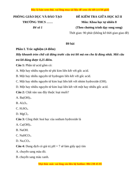 - Tailieugiaovien.com.vn giới thiệu bộ 2 đề thi giữa kì 2 (đề song song) môn Khoa học tự nhiên 8 Cánh diều mới nhất năm 2024 nhằm giúp Giáo viên có thêm tài liệu tham khảo ra đề thi KHTN lớp 8.