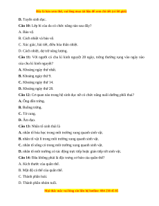 Câu 11: Với người có chu kì kinh nguyệt 28 ngày, trứng thường rụng vào ngày nào của chu kì kinh nguyệt?