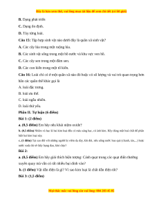 Câu 16: Loài chỉ có ở một quần xã nào đó hoặc có số lượng và vai trò quan trọng hơn