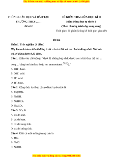 Môn: Khoa học tự nhiên 8 Đề số 2