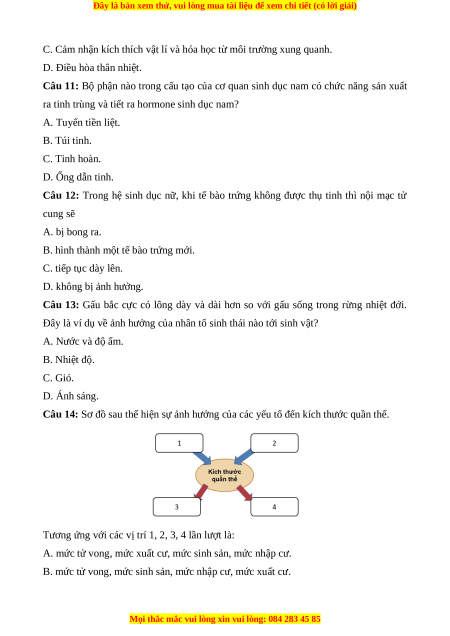 Câu 14: Sơ đồ sau thể hiện sự ảnh hưởng của các yếu tố đến kích thước quần thể.