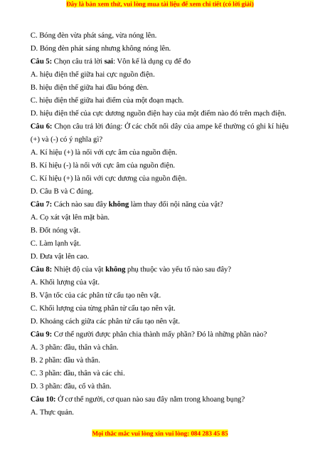 Câu 5: Chọn câu trả lời sai: Vôn kế là dụng cụ để đo