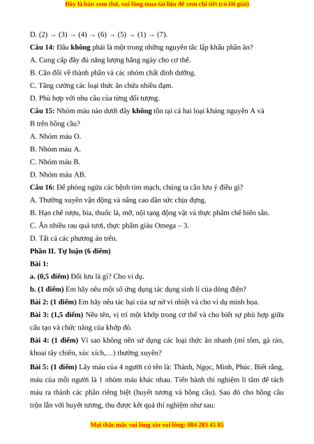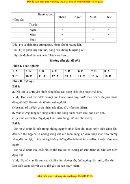 Bài 5: (1 điểm) Lấy máu của 4 người có tên là: Thành, Ngọc, Minh, Phúc. Biết rằng,