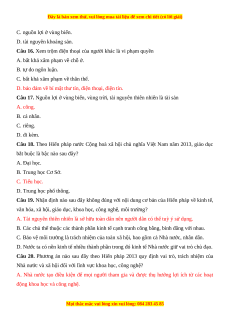 Câu 20. Phương án nào sau đây theo Hiến pháp 2013 quy định vai trò, trách nhiệm của