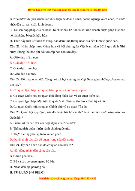 Câu 3. Cơ quan nào sau đây ban hành Hiến pháp? A. Chính phủ. B. Quốc hội. C. Tòa án nhân dân. D. Chủ tịch nước.