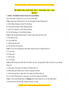 ĐỀ KIỂM TRA GIỮA HỌC KÌ II - NĂM HỌC 2022 - 2023 ĐỀ SỐ 1