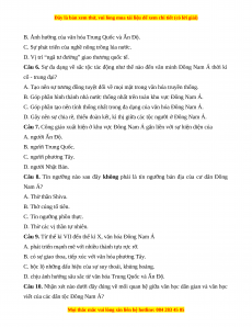 Câu 8. Tín ngưỡng nào sau đây không phải là tín ngưỡng bản địa của cư dân Đông Nam Á? A. Thờ thần Shiva. B. Thờ cúng tổ tiên.
