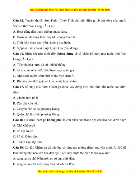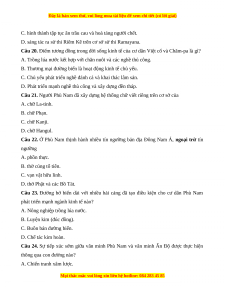Câu 18. Cư dân Chăm-pa không phải là chủ nhân của thành tựu văn hóa nào dưới đây? A. Chữ Chăm-cổ. B. Lễ hội Ka-tê. C. Sử thi Đăm-săn. D. Thánh Địa Mỹ Sơn.