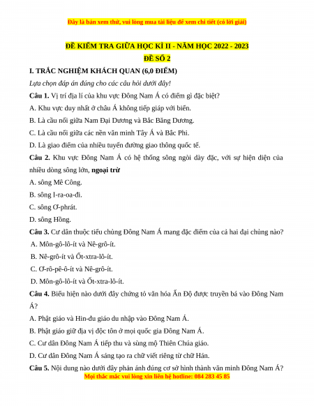 ĐỀ KIỂM TRA GIỮA HỌC KÌ II - NĂM HỌC 2022 - 2023 ĐỀ SỐ 2