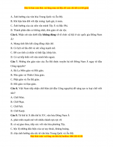 Câu 17. Người Chăm-pa đã xây dựng hệ thống chữ viết riêng trên cơ sở của A. chữ La-tinh. B. chữ Phạn. C. chữ Kanji. D. chữ Hangul.