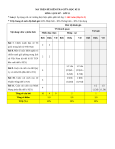 Mạng (nửa đầu thế kỉ XIX) (1,5đ) (1,5đ) Tổng số câu hỏi 16 4 0 2 1 Tổng số điểm 5,0 2,0 3,0 Tỉ lệ (%) 50% 20% 30%