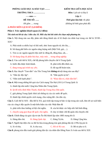 - Tailieugiaovien.com.vn giới thiệu bộ đề giữa kì 2 gồm đầy đủ ma trận và lời giải chi tiết môn Lịch sử & Địa lí 8 Cánh diều nhằm giúp Giáo viên có thêm tài liệu tham khảo ra đề thi Lịch sử & Địa lí lớp 8.