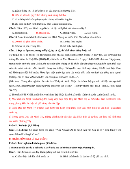 A-PHÂN MÔN LỊCH SỬ (5,0 ĐIỂM)