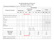 Nội dung/ đơn vị kiến thức Tự luận Nhiều lựa chọn Đúng - sai Trả lời ngắn Biết Hiểu VD Biết Hiểu VD Biết Hiểu VD Biết Hiểu VD Phân môn Lịch sử
